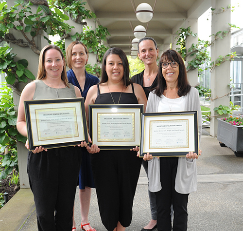 The three New Westminster Schools Education Assistants were among a total of six B.C. educators – including two classroom teachers and a registrar for the University of Victoria – who received the 2019 National Inclusive Education Awards.