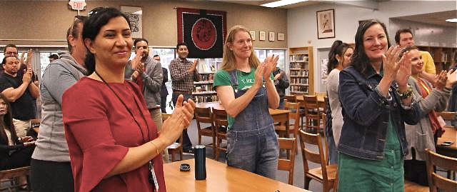 Staff at NWSS applaud recognition of Education Assistants Ann Negrin, Jenine Grass and Sarah Negrin…