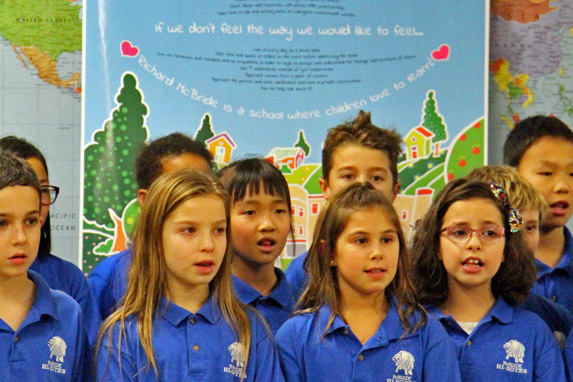 Richard McBride Elementary School’s Hi-Notes choir sang songs at the School Board’s Education Committee meeting in January that capture the spirit of their school: “We each deserve a place where we can count on a warm and friendly face…”