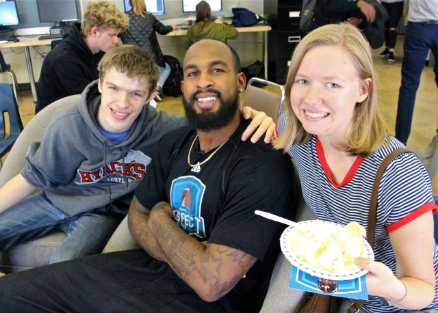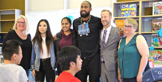 BC Lions Wide Receiver Manny Arceneaux was one of the Shaw “Kindness Sticks” judges on the national panel who chose the NWSS Best Buddies Club’s idea for a Games Room