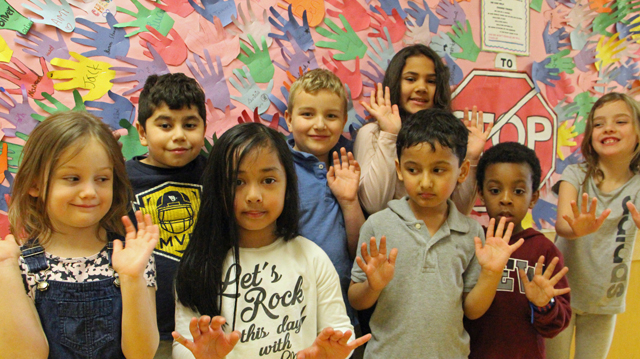 “It’s a way to support a positive culture across the school,” said Gill. For kids, it’s evident that finding the paper hand on the wall with their name on it is a sign of pride in the pledge they took.