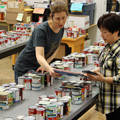Teachers Christine McNulty and Annie Lee get a headstart on sorting through the results of the 40th annual Food Drive at NWSS…