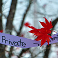 Ribbons tied to the nearly leafless maple trees and fluttering at the front… more