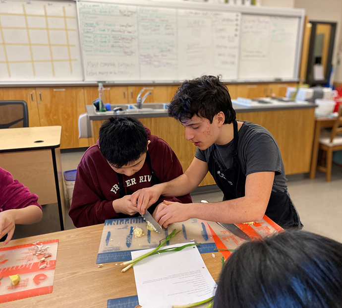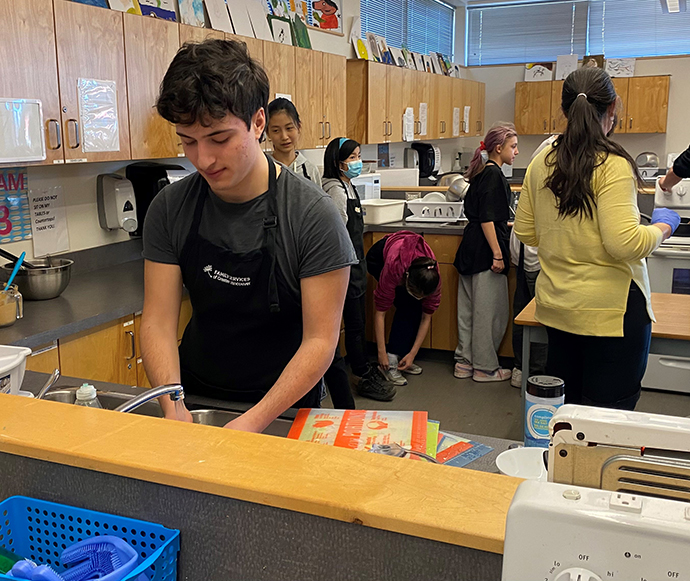 Andrea helps in multiple ways during the class, including by passing out ingredients, cleaning and washing utensils, and providing extra hands-on support to students with diverse needs. It’s help he loves giving, and it’s making the program a greater success for all.