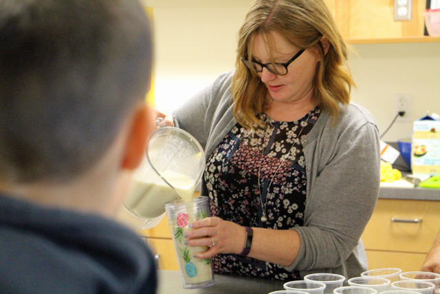 Nearly  50 students are lining up for a breakfast smoothie at Fraser River Middle School, where youth worker Tara Worth has just whipped up a mix of pineapple and almond milk..