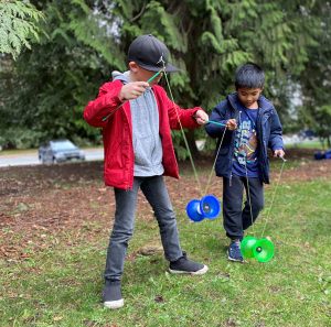 The program previously ran out of the school’s gymnasium, but given Qayqayt Elementary’ s space limitations, it’s pivoted to being an outdoor program running out of Tipperary Park. Rain or shine, the kids get the opportunity to get a breath of fresh air and spend some time in nature!
