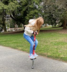 Every week the students start with their choice of stations, each with unique equipment they may or may not have tried before. Pogo sticks and hula hoops are among the options, but there’s also badminton racquets and soccer balls … options for every personality or interest.
