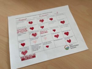 All around Qayqayt Elementary there are little hearts on the walls and doors, marked with kind and uplifting comments … hearts made by students who were inspired to show their community a little extra love, as they took on the #ActsOfLocalLove bingo challenge this week.