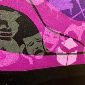 The black lines define and hold all the details. They are the lines that ground the colours and images, bringing the whole piece together as they encapsulate the mural. Given the importance of these structural lines, Mrs. Jurgensen knew “the black lines couldn’t just be painted by anybody.” So, each Indigenous identifying student was individually asked to partake in painting these final pieces, tying them all together.