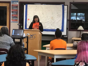 The QMS team invited Chief Rhonda Larabee of the Qayqayt First Nation in to speak to speak about her Nation’s history, about Orange Shirt day, and to speak to what reconciliation means to her. The small talk happened in the library, but was broadcast out to each of the middle schools to watch. FRMS was a hub of action as Orange Shirts were sent across the District and the lessons were brought to life inside the school. And there were activities ranging from assemblies at GMS to individual class lessons that challenged kids to reflect on the 94 calls-to-action of the Truth and Reconciliation Commision.