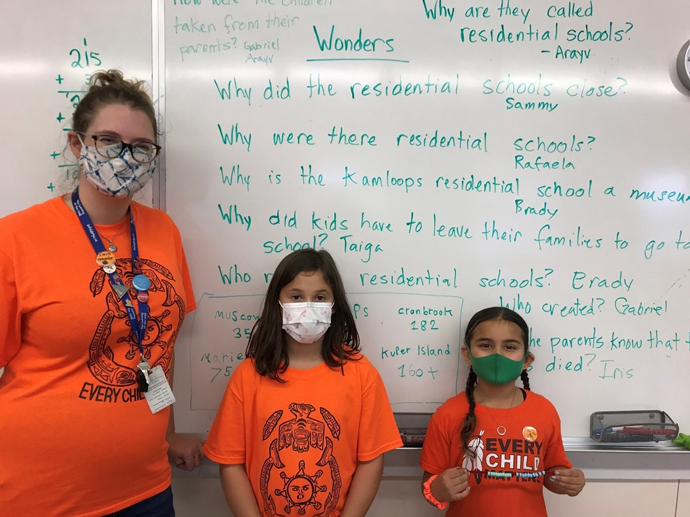 Our new District Vice-Principal for Indigenous Education had this comment to share in a recent letter of reflection and introduction she wrote: “The National Day of Truth and Reconciliation provided the opportunity for reflection on difficult truths about our country and on how we must move forward together in the best way possible.” She followed this up to say, “This year has more meaning…. and a lot more reflection on Canada’s history of colonialism and genocide of Indigenous peoples due to the finding of the 215 children, who died and were found in a mass grave burial site at Tk’emlúps te Secwépemc at the former Kamloops Indian Residential School.”