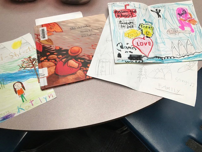 The experiences and lessons shared in age-appropriate books became teachable moments and reflections that inspired art. Stories captured in film (or the “Grandpa’s Drum” episode of Molly of Denali) captured kids into lessons that sparked conversation.