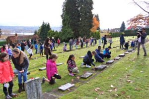 The students visited Fraser Cemetery November 5, where they each placed a poppy on the headstone of a Canadian veteran, the majority of whom died fighting in one of the 20th century’s two World Wars.