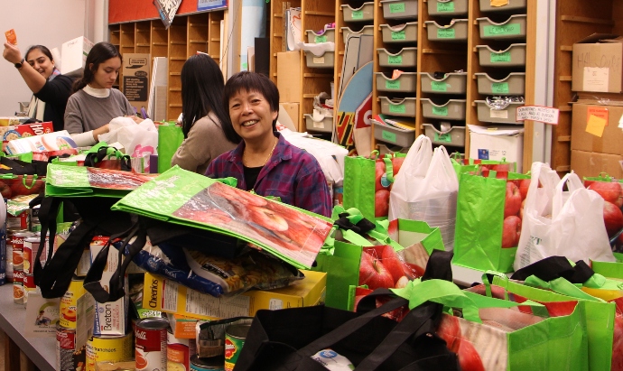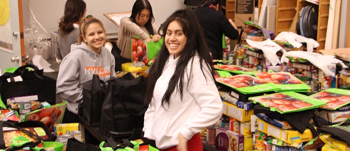 Dec.6, 2019 – Boxes of Cheerios, tins of salmon, packets of pasta – and gifts for students and families: Students in the school’s Student Leadership Council assembled more than 71 Christmas Hampers and sorted more than 2,400 food items by the end of Tuesday evening this week.
