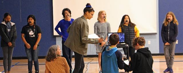 The leadership students shared video clips at the assembly of the young Canadian Joe Opatowski, who inspired the Vow of Silence initiative at WE.org before he was killed in a car accident.