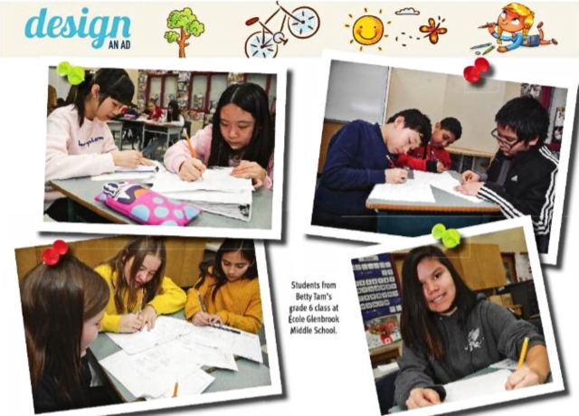 School artists team up with businesses and groups to support their messages with fresh ideas and artistic designs. Click on the fullscreen icon on the bottom right to zoom in or reduce the document. And visit Royal City Centre to see the ads on display in April.