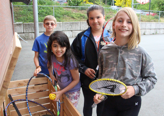 That means kids can lift the lid on hula hoops, badminton sets, hockey sticks, basketballs and more in boxes at Qayqayt school, and at Hume Park, Moody Park and Grimston Park. The community partnership with New Westminster Schools, City of New Westminster, Fraser Health, Royal Columbian Hospital Foundation, and SCOPE BC is designed to encourage kids to get out and play.