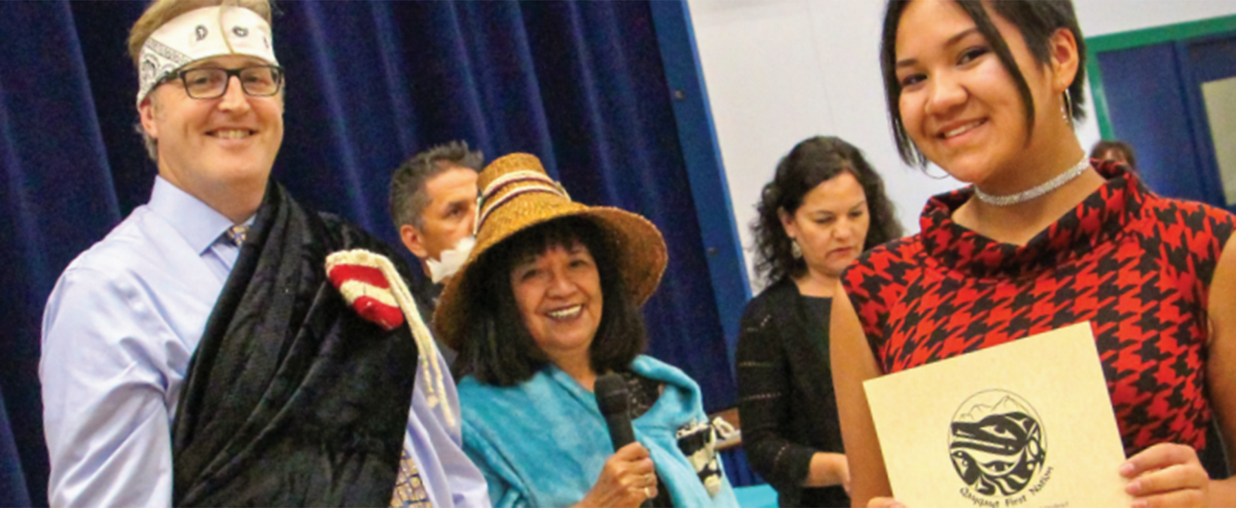 Our latest agreement was developed with the support of students, families, district staff, and partner groups on the district Indigenous Education Advisory Committee. They included Chief Rhonda Larrabee of the Qayqayt First Nation, Elder Keely George of the Douglas First Nation, along with representatives from Douglas College and Simon Fraser University, Aboriginal Child and Youth Mental Health, and other stakeholders.