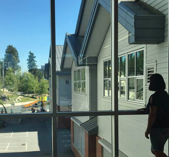 One of Principal Karen Catherwood’s favorite views is the foyer of École Qayqayt Elementary School. That’s because it’s filled with natural light.