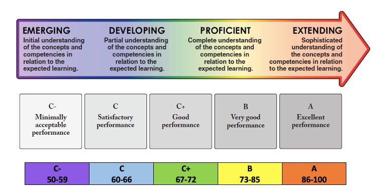 Progress is measured based on the learning standards in our Provincial Curriculum.