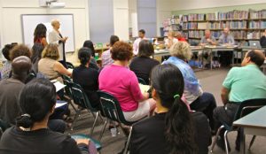 School Principal Sandra Cottingham and Vice-Principal Debbie Ramen welcomed trustees and shared the story of a school-wide garden project that was the highlight of the year. But instead of relying on a slide presentation, everyone in the packed library meeting room joined Cottingham on a tour to see it all firsthand.