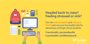 You can also visit Fraser Health’s School Health web resource: here, you will find information on kindergarten readiness, mental wellness for school-aged children, information on support services for children and much more.