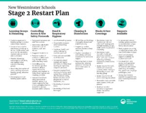 Our elementary schools in New Westminster are organized into learning groups of up to 30 people, at middle school we have groups of up 60 people, and at secondary school – where students are better able to reduce contact themselves – we’re averaging around 90-100 people per cohort (below the 120 people limit set by the provincial health and safety authorities).