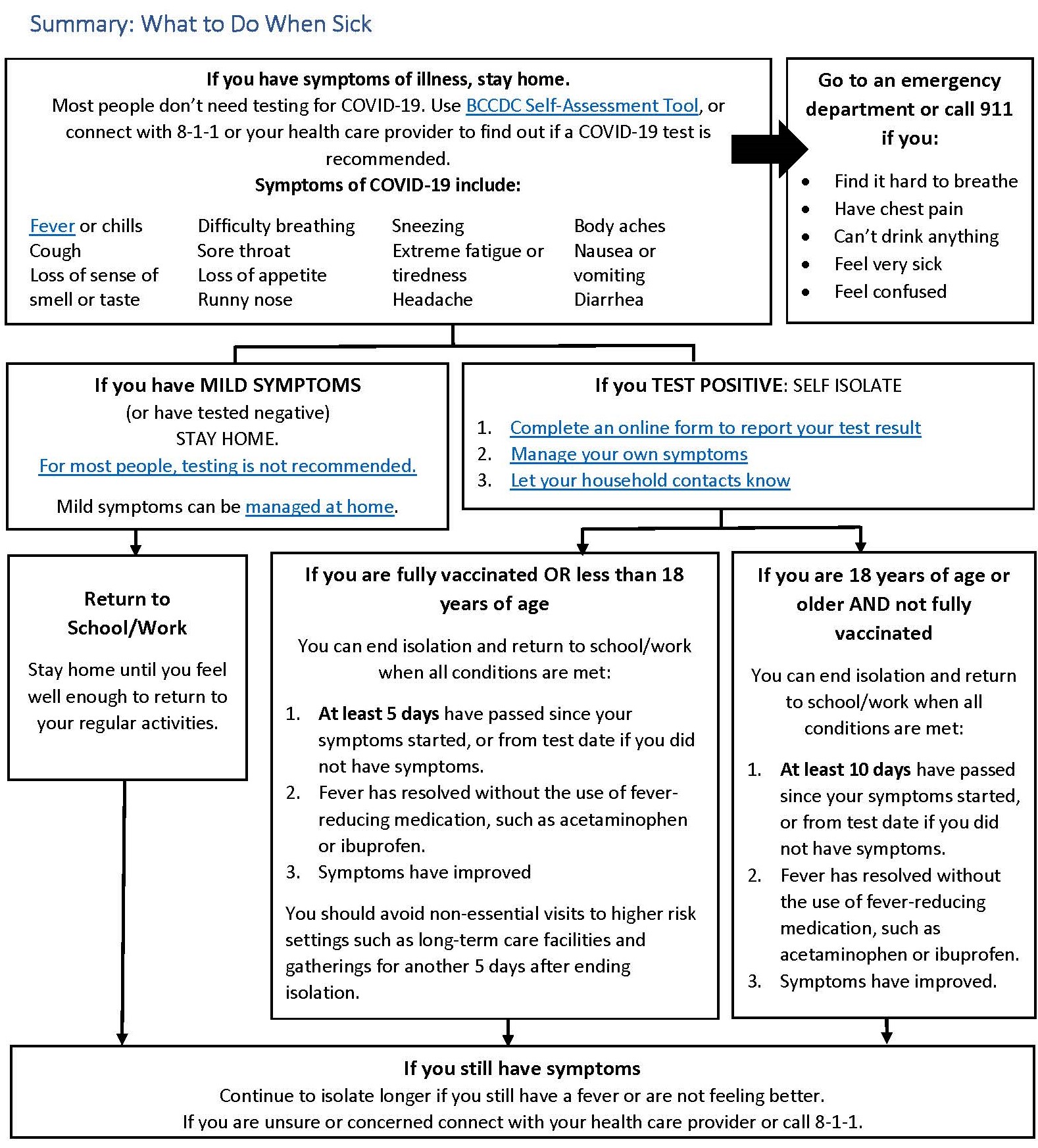 January 24, 2022 – Following last week’s changes to the BC Centre for Disease Control’s recommendations around COVID-19, the provincial government created this document to help support families in navigating what to do – from reminders on symptoms to detailed instructions on self-isolation: Government of BC extended daily health check and symptom guide