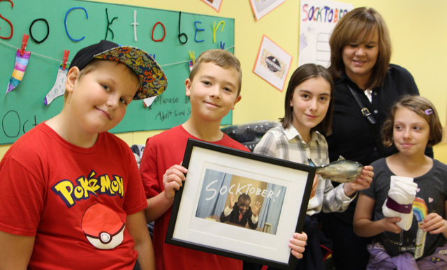 Anna, Isla, Andre and Kai are Grade 5 members of F.W. Howay’s Student Council  who have been helping lead the Socktober campaign.